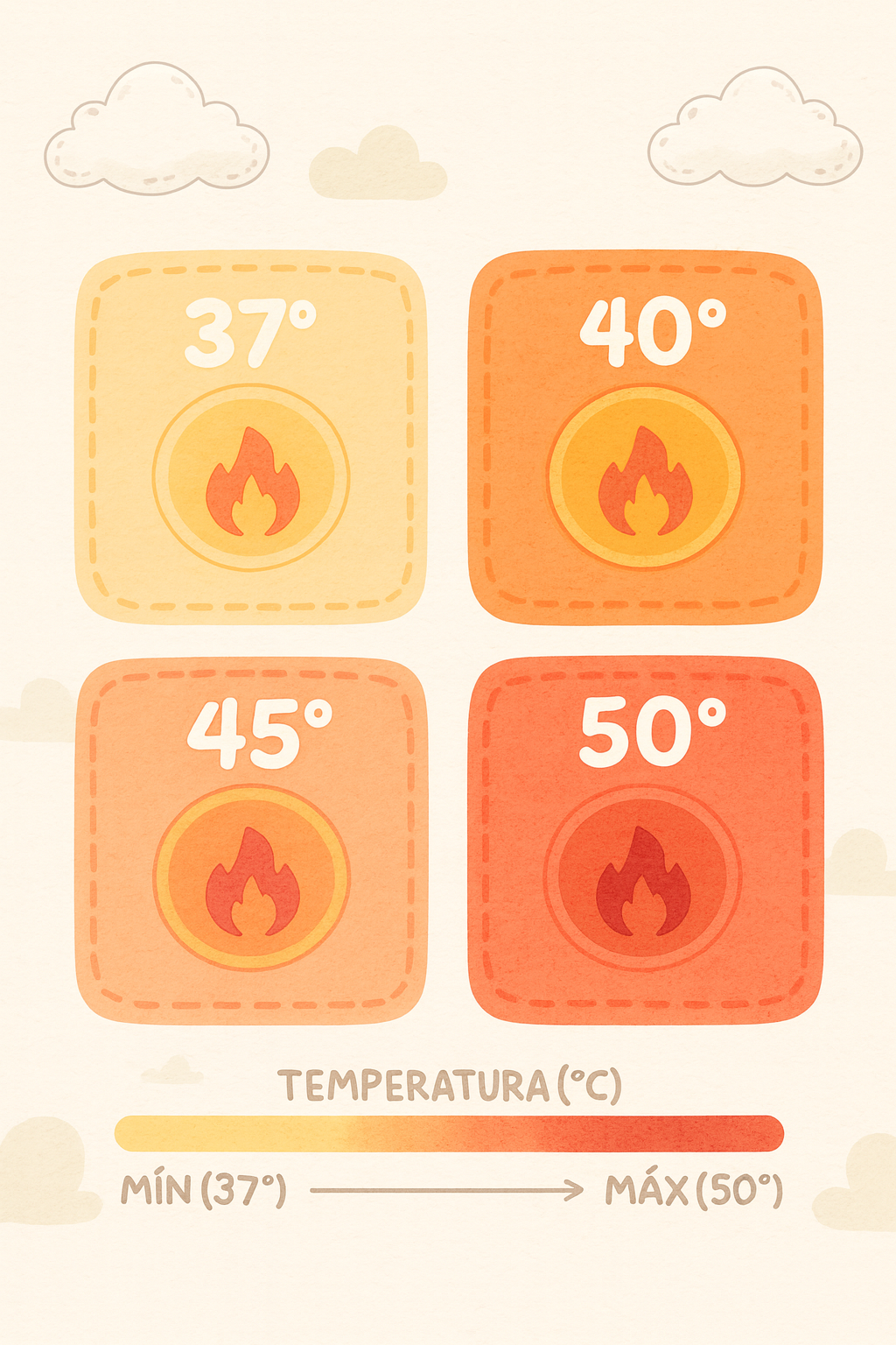 40 °C (naranja) → Opción recomendada para fórmula infantil, ligeramente más caliente para una mejor disolución.